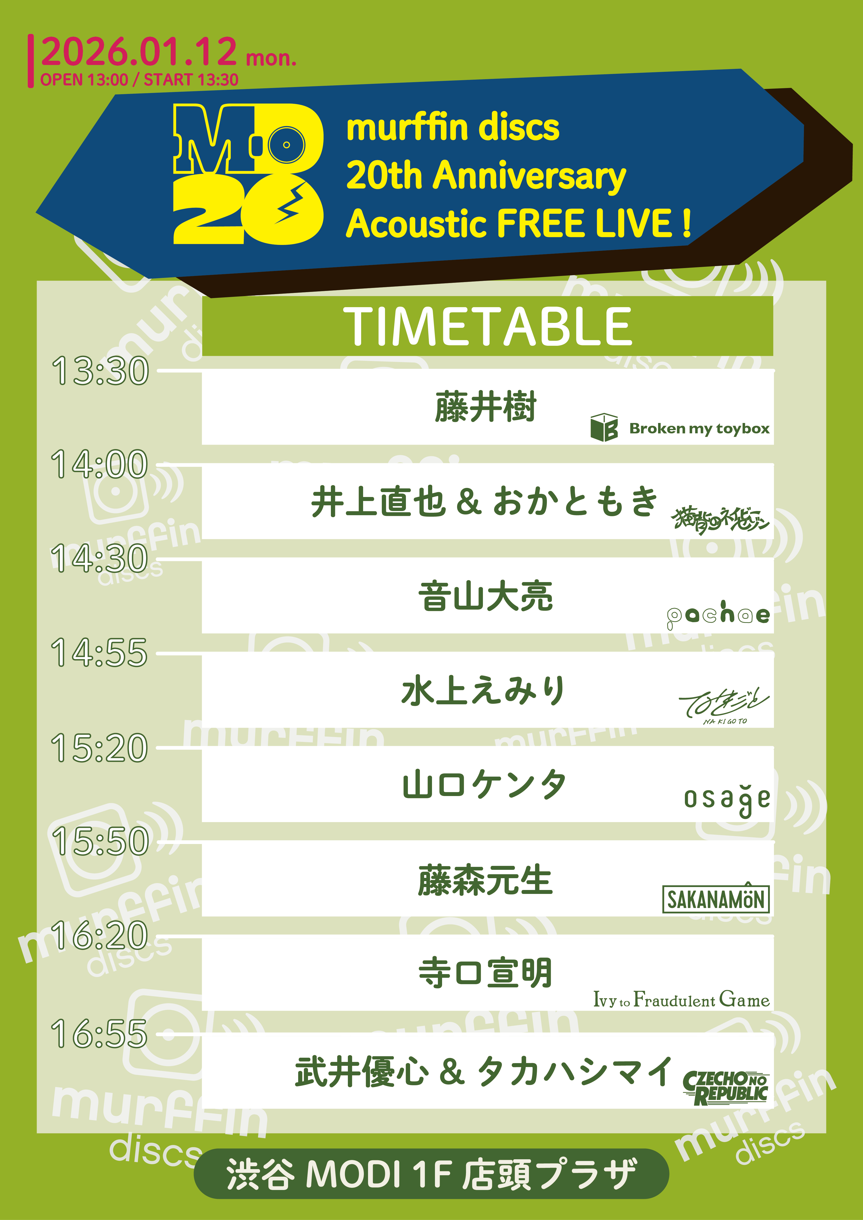 murffin discsのレーベル設立20周年を記念し、1月8日から渋谷モディ1F 「SHIBUYA BASE」にて『murffin discs 20th Anniversary POP UP STORE』が期間限定でオープン!!